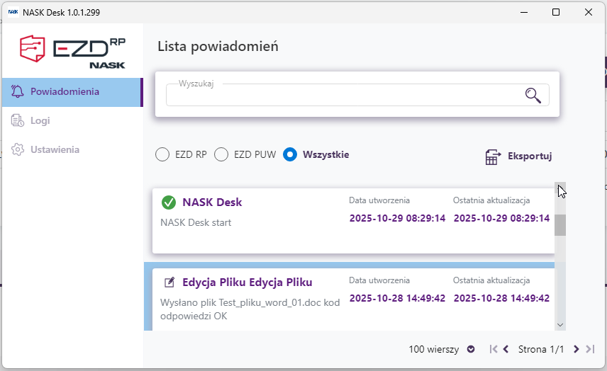 Przygotowany przez NASK program NASK Desk jest pośrednikiem między systemem EZD a komputerem użytkownika systemu. Program pracuje w tle i umożliwia m.in.: