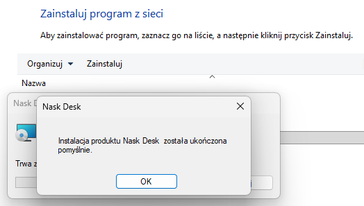 W naszej sieci, program NASK Desk został przygotowany do szybkiej, samodzielnej instalacji. Aby zainstalować, należy wykonać opisane niżej kroki.